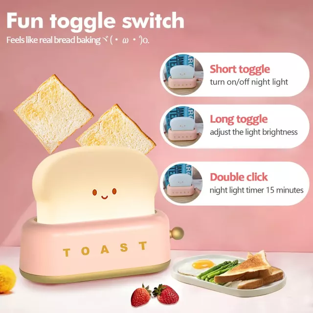 Ready to add a little charm and light to your home? Don’t miss out on this cute and functional USB rechargeable toaster LED night light! It’s perfect for creating a cozy atmosphere, lighting up small spaces, and adding a playful touch to your décor. Grab yours now and enjoy the warm glow it brings to your space.